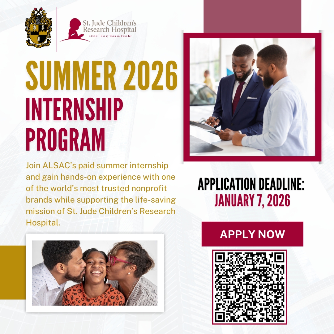 ALSAC’s Summer 2026 Internship Program provides NPHC members with immersive, hands-on nonprofit experience supporting St. Jude’s mission through fundraising, community engagement, and culturally relevant outreach to African American communities and organizations.